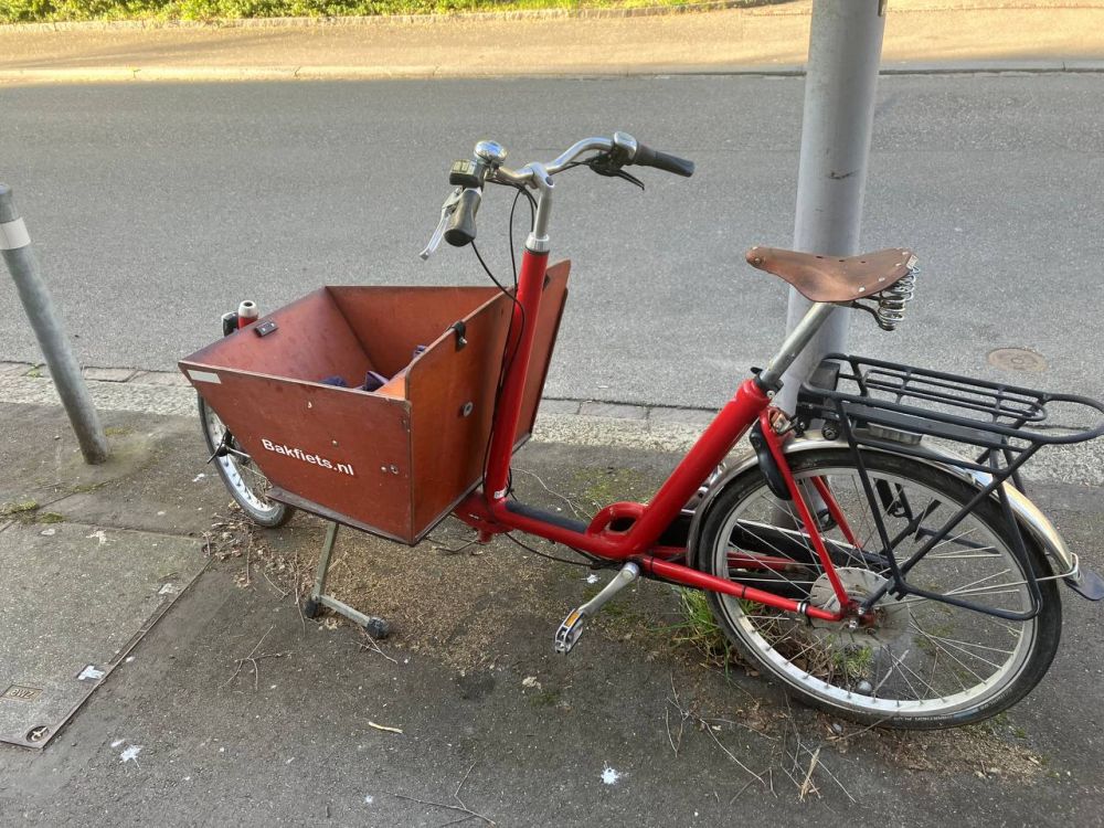 Cargobike Backfiets ohne elektrische Trettunterstützung.