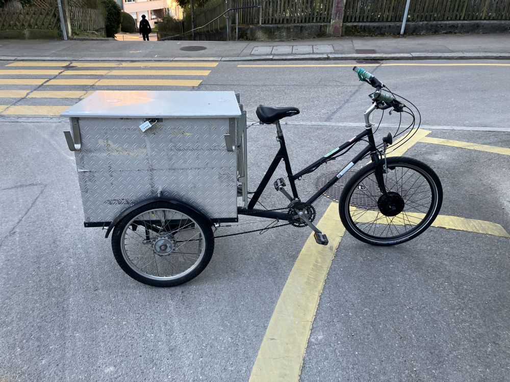 Achtung: Schwenkender Vorderbereich. Das Lastenvelo ist sehr gewöhnungsbedürftig, eine Testfahrt ist empfohlen.