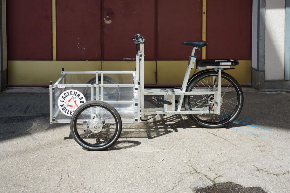 Dieses E-Lastenrad wurde im September 2022 im Rahmen eines Workshops gemeinsam gebaut. Es ist das Trike-Modell von XYZ Cargo und kann bis zu 200kg tragen.