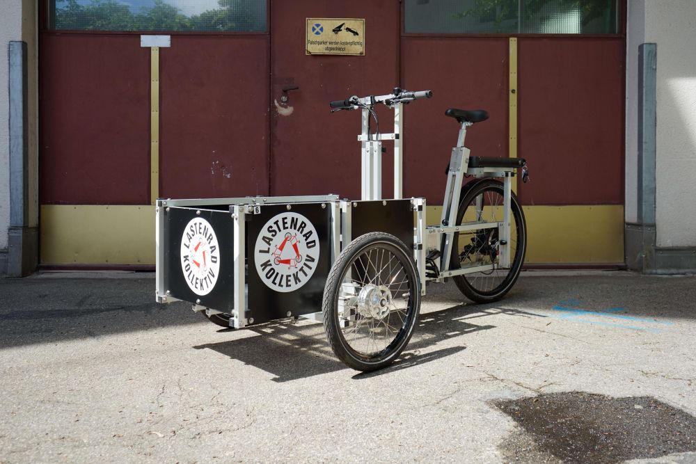 Dieses Lastenrad wurde im September 2022 im Rahmen eines Workshops gemeinsam gebaut. Es ist das Trike-Modell von XYZ Cargo und kann bis zu 200kg tragen.