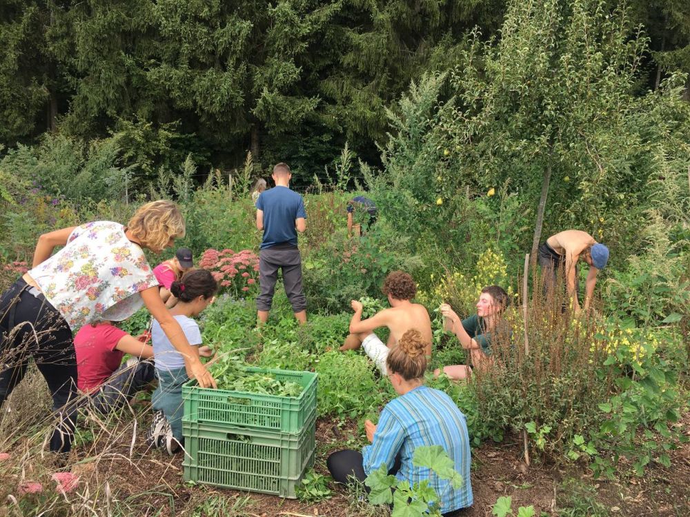 Der Wecker läutet. Ich versuche mich noch ein paar Mal umzudrehen im Schafsack, bis ich mich dann doch dazu bewegen kann den Zeltreisverschluss zu öffnen. Frische, gut duftende Luft – wärmer als erwartet – strömt mir ins Gesicht. Langsam herauskriechend merke ich, dass da gerade niemand anders wach ist. Nur die Frösche, die schon laut rufen, dass ich mal beim Teich vorbeischauen soll. Eine Zeit lange beobachte ich die Frösche, die entweder schon ins Wasser gesprungen sind, oder mich misstrauisch vom Ufer beäugen. Dann das Weiterspazieren am Waldrand. Ein Specht irgendwo weit oben. Ein Rascheln im Busch und der kleine Fuchs, der davonrennt. Dann das gemeinsame zmörgele. Eine schöne Gemeinschaft, die sich auf dem Birchhof zusammengefunden hat.